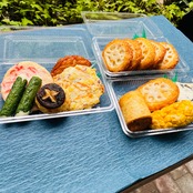 ⚪︎カナッペ2個、もろこし天2個、きくらげ天1個